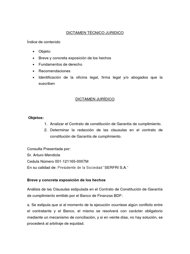 Dictamen Tecnico Juridico De Lagarantia Pdf Arbitraje Pagos
