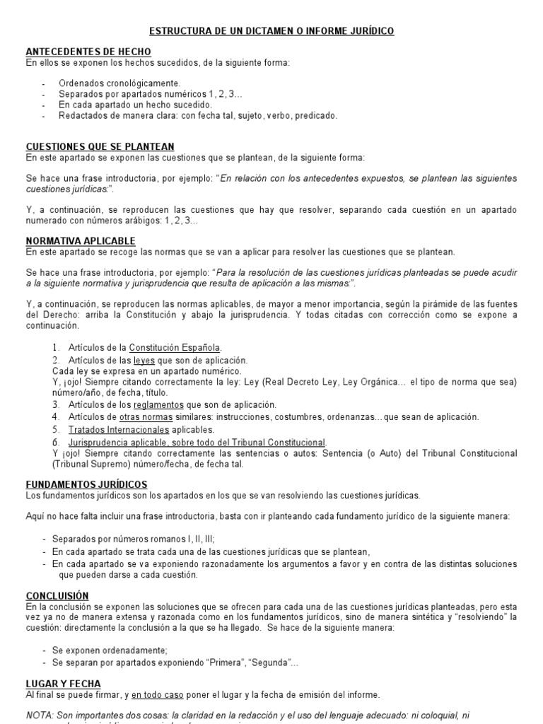 Estructura De Un Dictamen O Informe Juridico Pdf Caso De Ley Fuentes Del Derecho