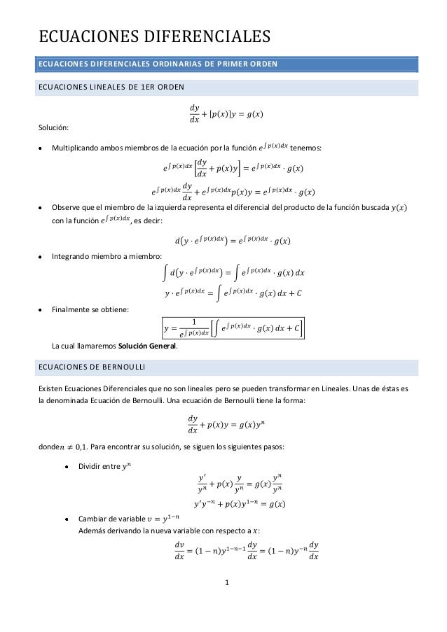 Ecuaciones de Variables Separables Ecuaciones Diferenciales - p. Una ecuación diferencial de primer orden es lineal cuando se puede hacer que tenga este aspecto. Método de 4 pasos. Puedes encontrar todas nuestras calculadoras en línea aquí. Otro tipo de ecuaciones son las ecuaciones diferenciales de retraso o retardo que están caracterizadas por la presencia de un desplazamiento en el argumento o variable x-x. De ecuaciones diferenciales de 1 Orden por el método de Runge-Kutta.