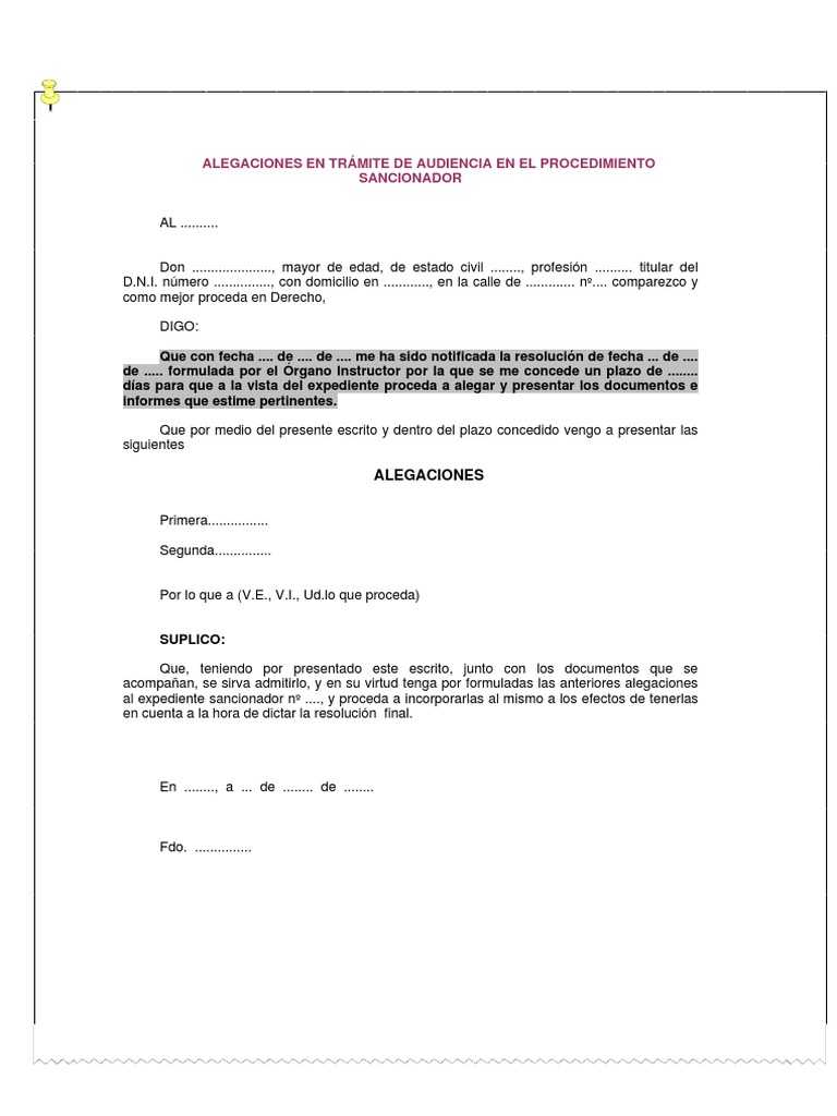 Modelo Escrito De Alegaciones A Presentar En El