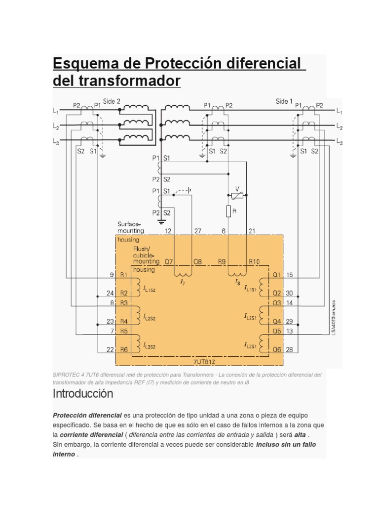 Esquema De Proteccion Diferencial Del Transformador Pdf Transformador Corriente Electrica