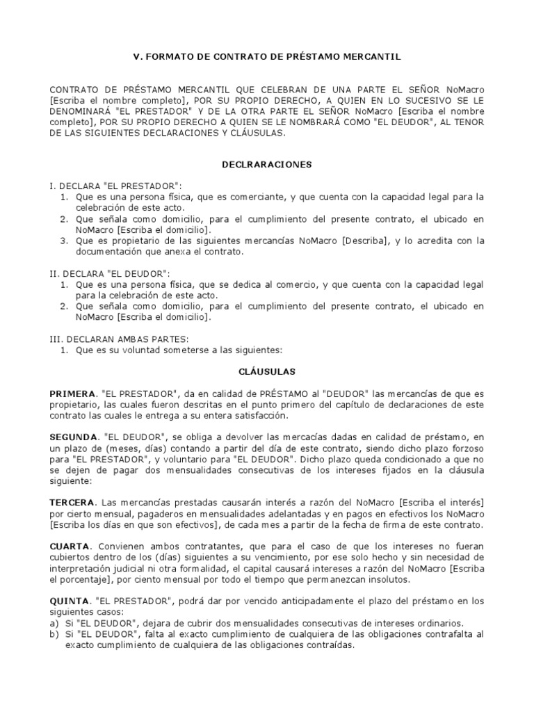Contrato De Prestamo Mercantil Ejemplo Pdf Prestamos Personales En Mendoza