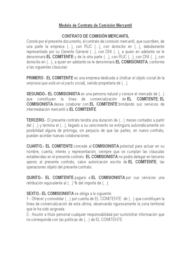 Modelo De Contrato De Comision Mercantil Pdf Justicia Crimen Y Violencia