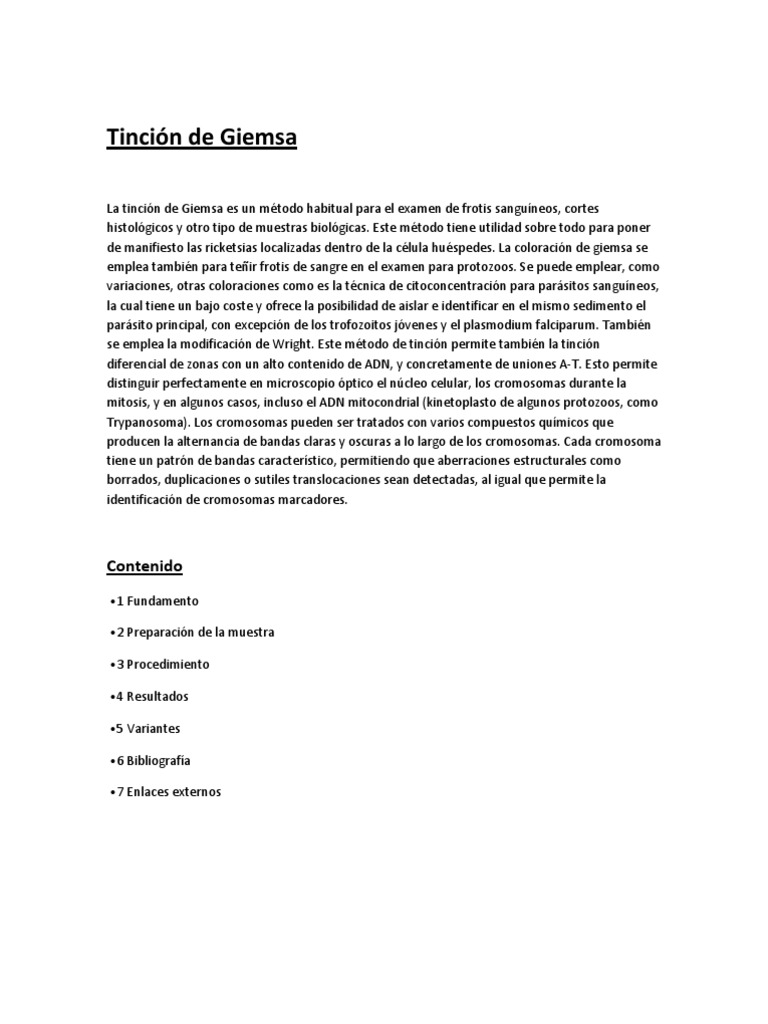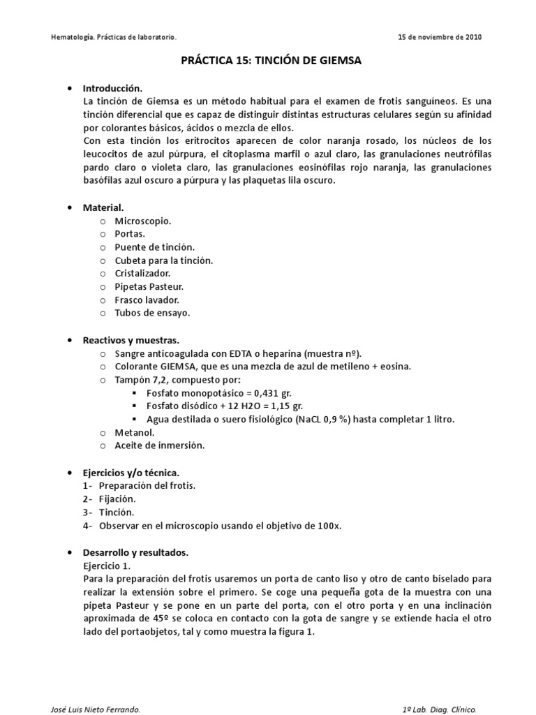 Si continúas navegando por ese sitio web aceptas el uso de cookies. Su creación estuvo inspirada por el trabajo realizado por Romanowsky donde Gustav Giemsa químico y bacteriólogo originario de Alemania la perfeccionó agregando glicerol para estabilizar los compuestos. Inclinar levemente el portaobjetos para que caiga el metanol. La tinción de Giemsa es un tipo de coloración de muestras clínicas basada en la mezcla de colorantes ácidos y básicos. Práctica realizada en la asignatura de hematología en el CFGS de Laboratorio de Diagnóstico ClínicoPodéis encontrar información añadida sobre la práctica y. José Luis Covarrubias Castro mis agradecimientos por la orientación y sugerencias para la realización.